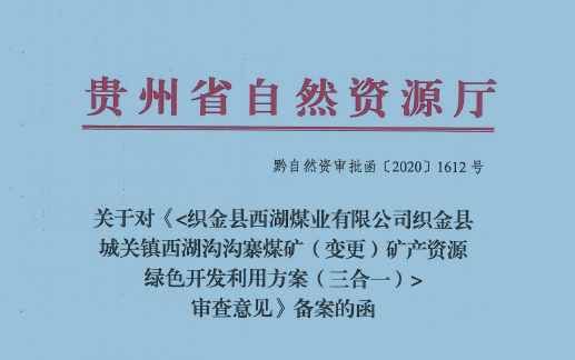 織金縣城關鎮(zhèn)西湖溝溝寨煤礦礦產(chǎn)資源綠色開發(fā)利用方案(三合一)
