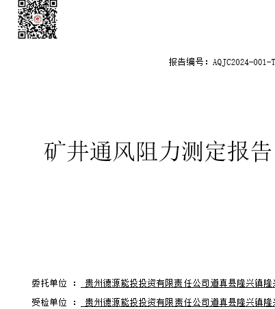 道真縣隆興煤礦礦井通風阻力測定報告