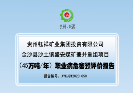 金沙縣沙土鎮(zhèn)盛安煤礦兼并重組項(xiàng)目職業(yè)病危害預(yù)評(píng)價(jià)報(bào)告