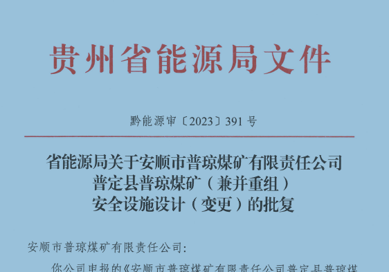 普定縣普瓊煤礦(兼并重組) 安全設(shè)施設(shè)計(變更)