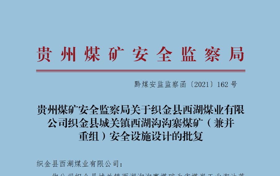 織金縣城關(guān)鎮(zhèn)西湖溝溝寨煤礦安全設(shè)施設(shè)計(變更)