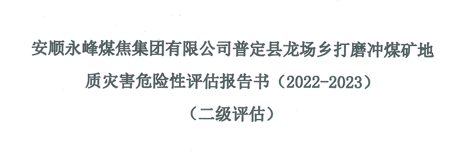 安順永峰煤焦集團(tuán)有限公司普定縣龍場鄉(xiāng)打磨沖煤礦地質(zhì)災(zāi)害危險(xiǎn)性評(píng)估報(bào)告書(2022-2023年度) (二級(jí)評(píng)估)