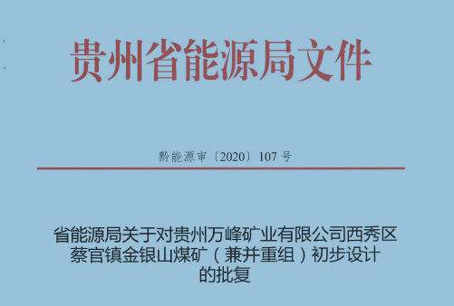 貴州萬峰礦業(yè)有限公司西秀區(qū)蔡官鎮(zhèn)金銀山煤礦(兼并重組)初步設(shè)計(jì)