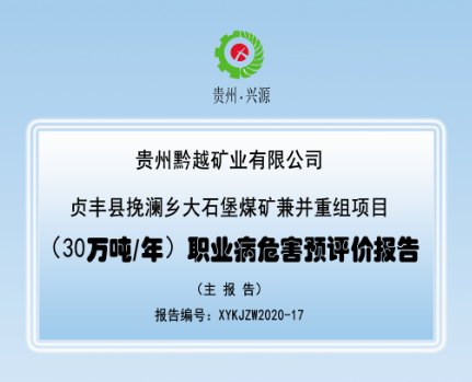 貞豐縣挽瀾鄉(xiāng)大石堡煤礦兼并重組項(xiàng)目 (30萬噸/年)職業(yè)病危害預(yù)評價(jià)報(bào)告