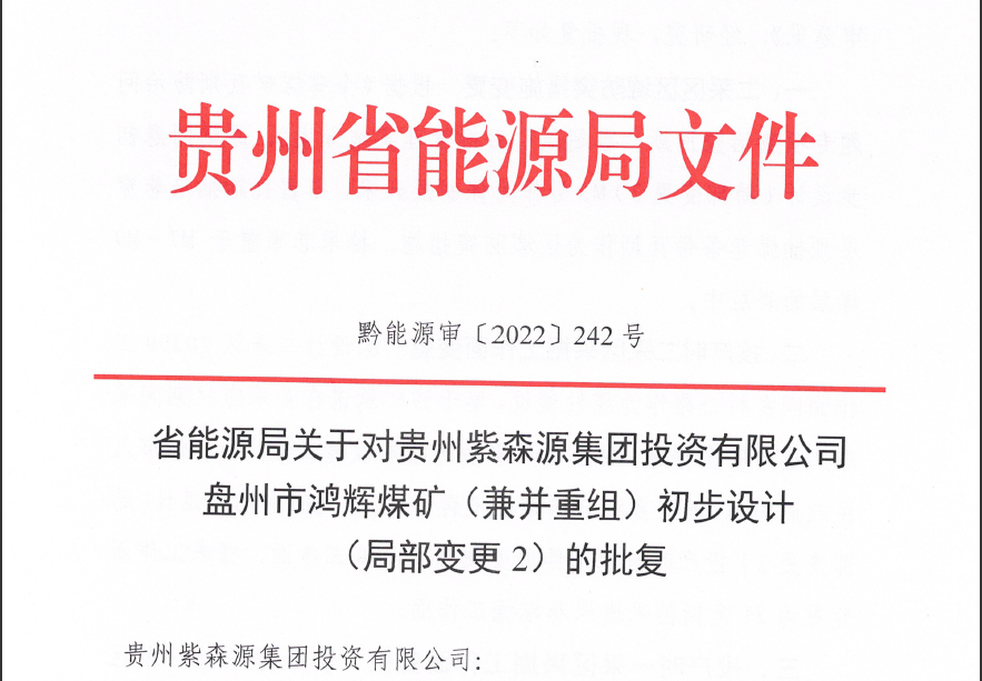 盤州市鴻輝煤礦 初步設(shè)計(jì)(局部變更2)
