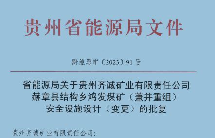 貴州齊誠礦業(yè)有限責(zé)任公司 赫章縣結(jié)構(gòu)鄉(xiāng)鴻發(fā)煤礦(兼并重組)安全設(shè)施設(shè)計(jì)(變更)