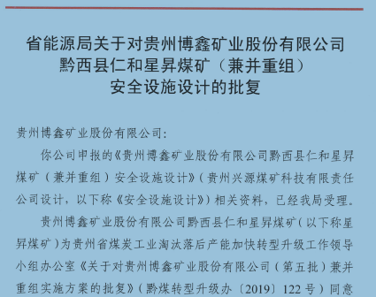 貴州博鑫礦業(yè)股份有限公司 黔西縣仁和星昇煤礦(兼并重組) 安全設(shè)施設(shè)計(jì)