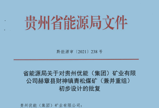 貴州優(yōu)能(集團(tuán))礦業(yè)有限公司 赫章縣財(cái)神鎮(zhèn)青松煤礦(兼并重組) 初步設(shè)計(jì)