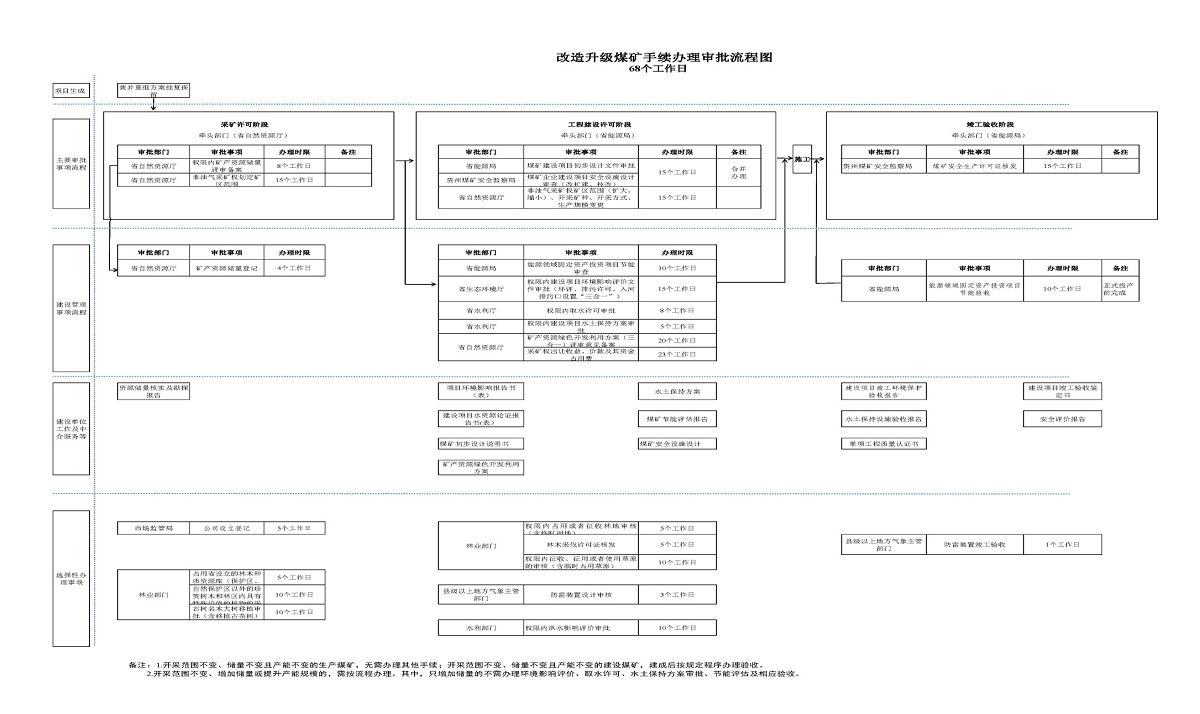 竣工驗收階段,包括節(jié)能審查、排污許可證核發(fā)、煤礦安全生產許可證核發(fā)等。由省能源局牽頭審批,總時限不超過20個工作日。