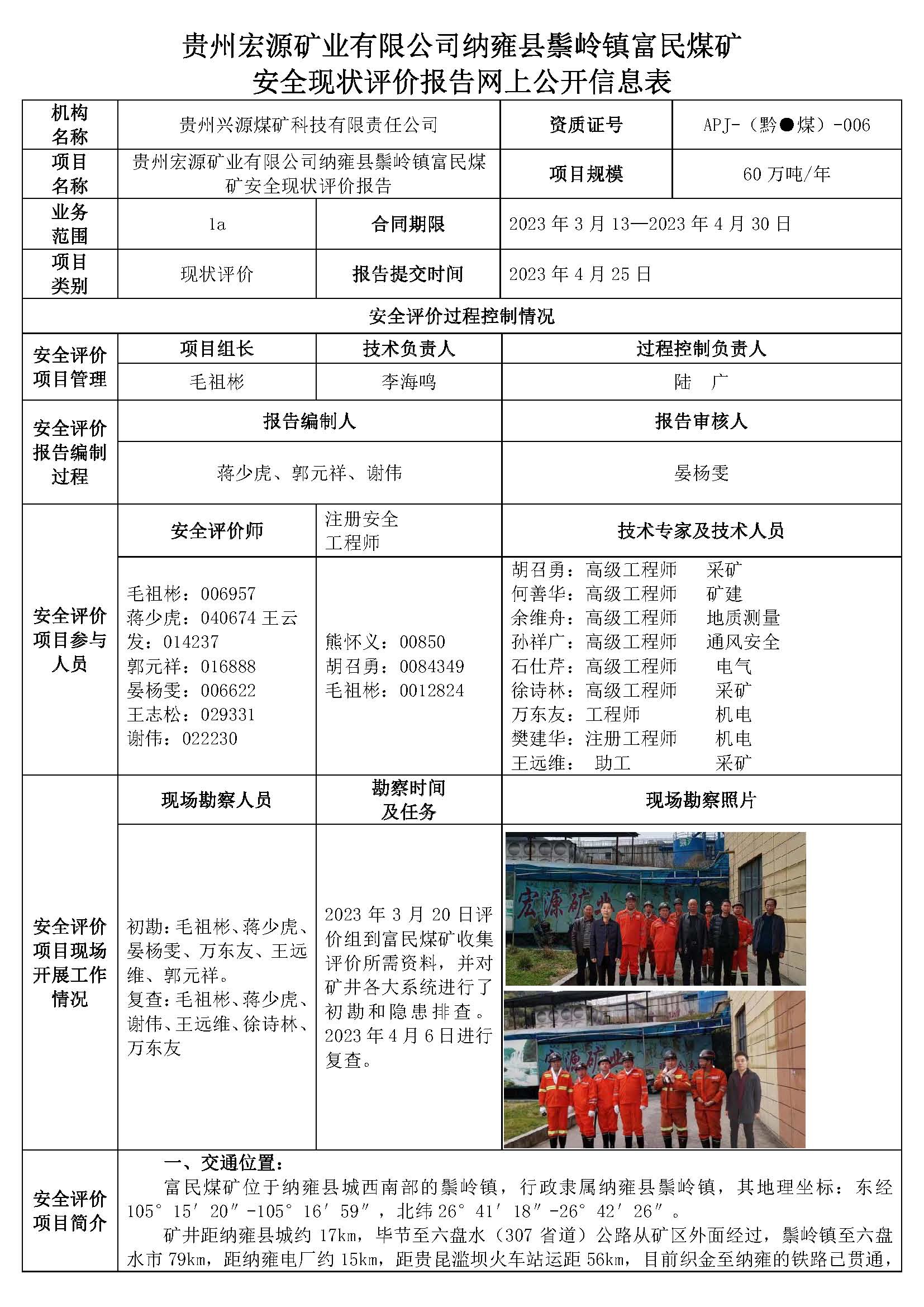 貴州宏源礦業(yè)有限公司納雍縣鬃嶺鎮(zhèn)富民煤礦安全現(xiàn)狀評價(jià)報(bào)告網(wǎng)上公開信息表