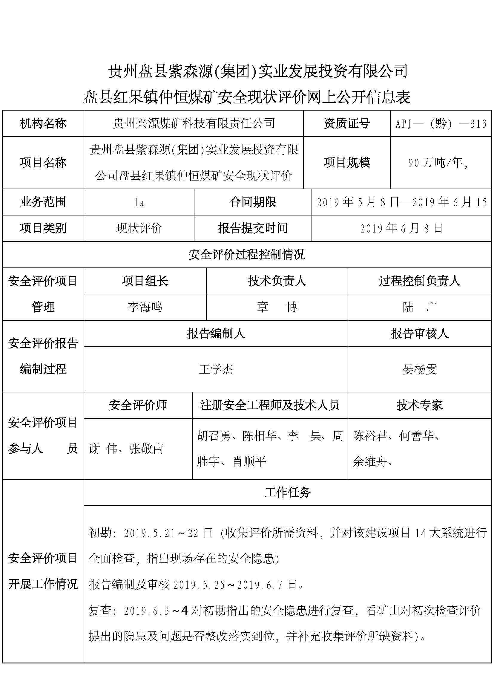 貴州盤縣紫森源(集團)實業(yè)發(fā)展投資有限公司盤縣紅果鎮(zhèn)仲恒煤礦安全現(xiàn)狀評價網(wǎng)上公開信息表