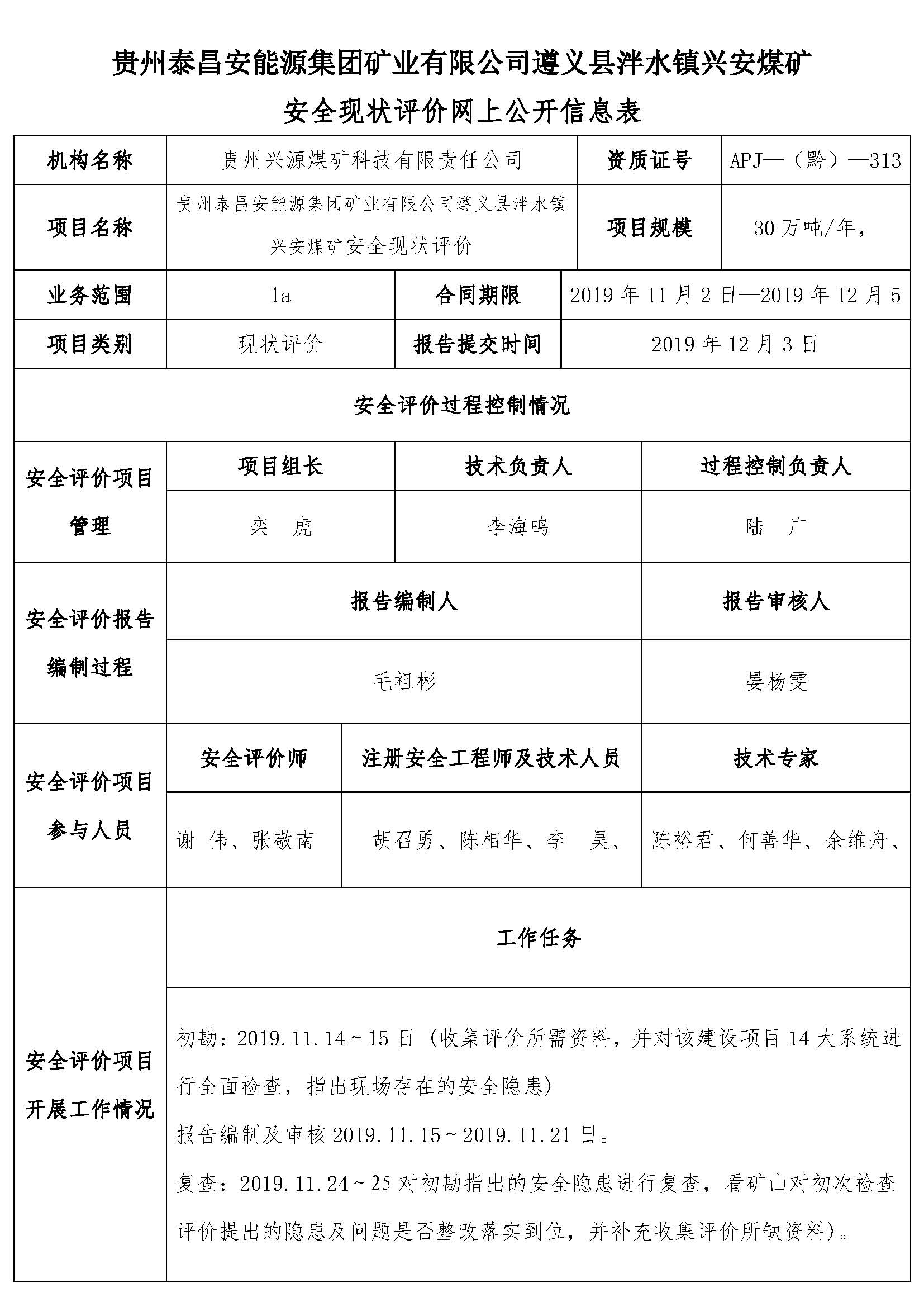 貴州泰昌安能源集團(tuán)礦業(yè)有限公司遵義縣泮水鎮(zhèn)興安煤礦安全現(xiàn)狀評(píng)價(jià)網(wǎng)上公開信息表
