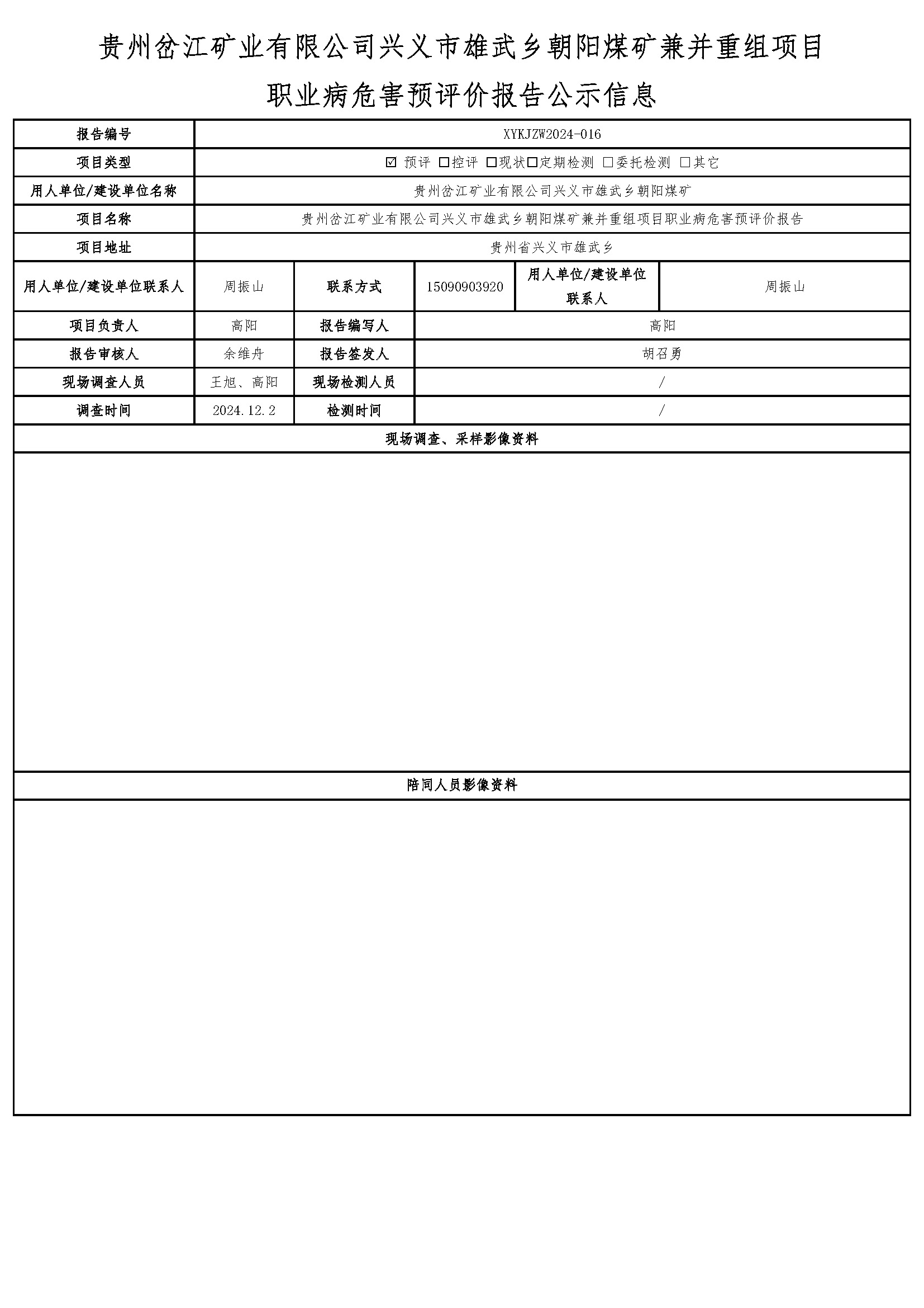 貴州岔江礦業(yè)有限公司興義市雄武鄉(xiāng)朝陽(yáng)煤礦兼并重組項(xiàng)目 職業(yè)病危害預(yù)評(píng)價(jià)報(bào)告公示信息