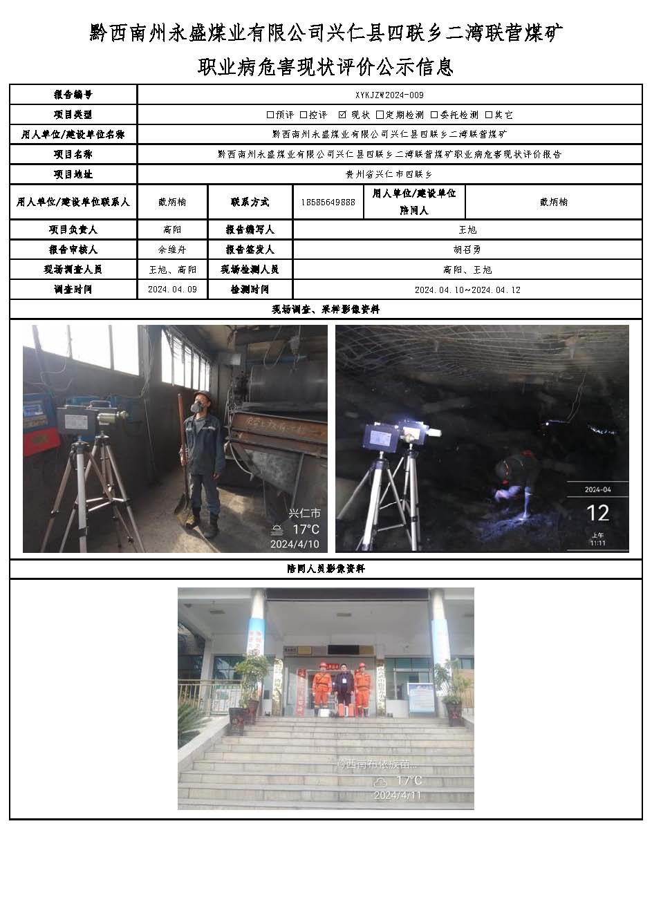 黔西南州永盛煤業(yè)有限公司興仁縣四聯(lián)鄉(xiāng)二灣聯(lián)營煤礦 職業(yè)病危害現(xiàn)狀評價公示信息
