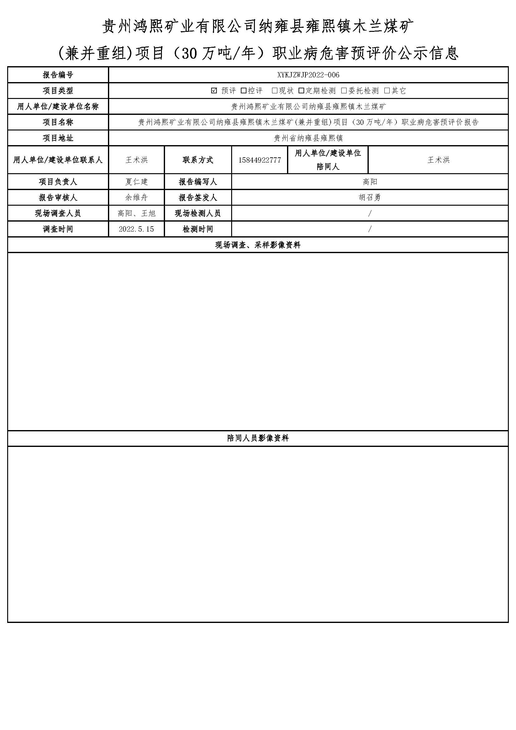 貴州鴻熙礦業(yè)有限公司納雍縣雍熙鎮(zhèn)木蘭煤礦 (兼并重組)項(xiàng)目(30萬噸/年)職業(yè)病危害預(yù)評(píng)價(jià)公示信息