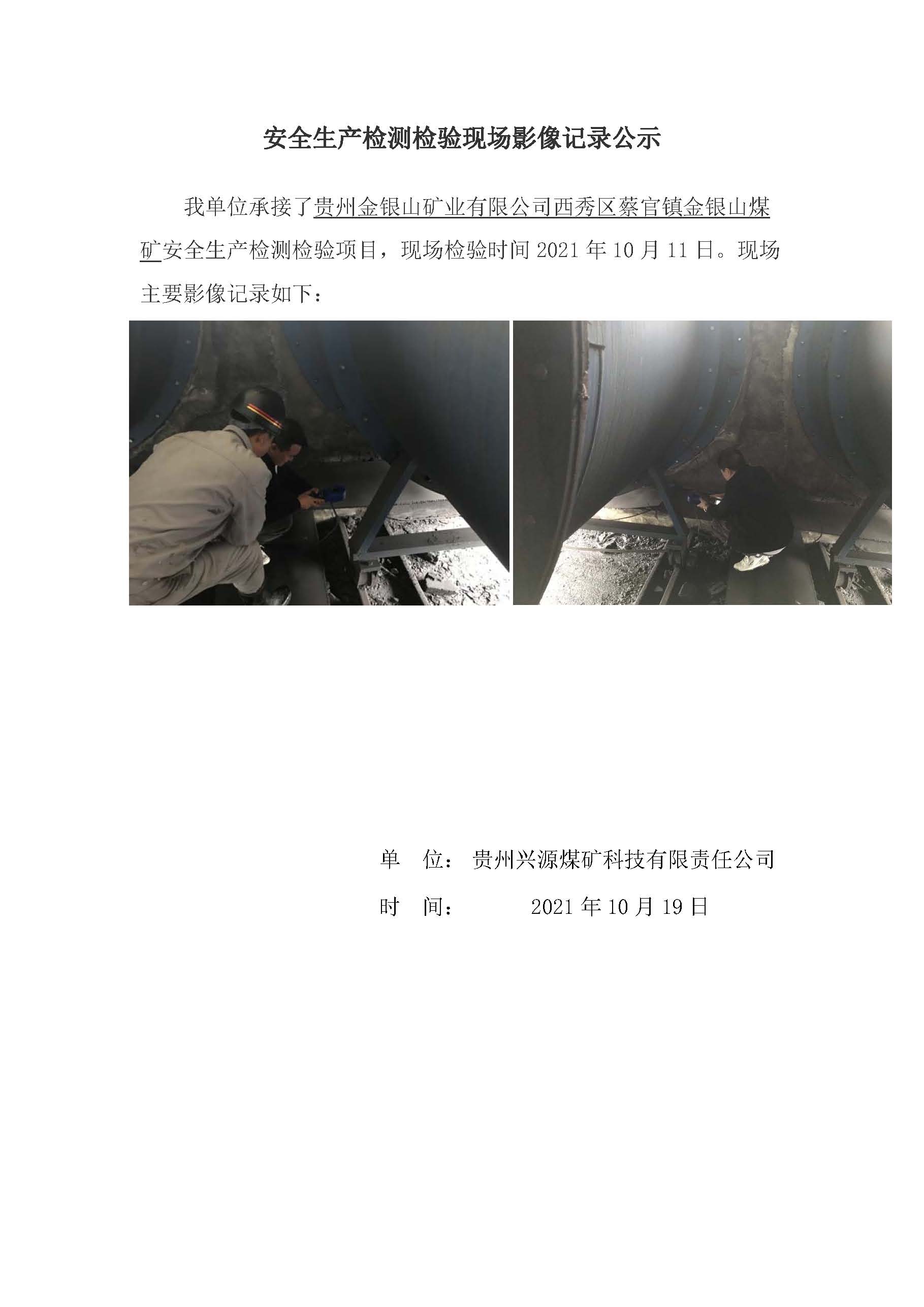 安全生產(chǎn)檢測(cè)檢驗(yàn)現(xiàn)場(chǎng)影像記錄公示【貴州金銀山礦業(yè)有限公司西秀區(qū)蔡官鎮(zhèn)金銀山煤礦】
