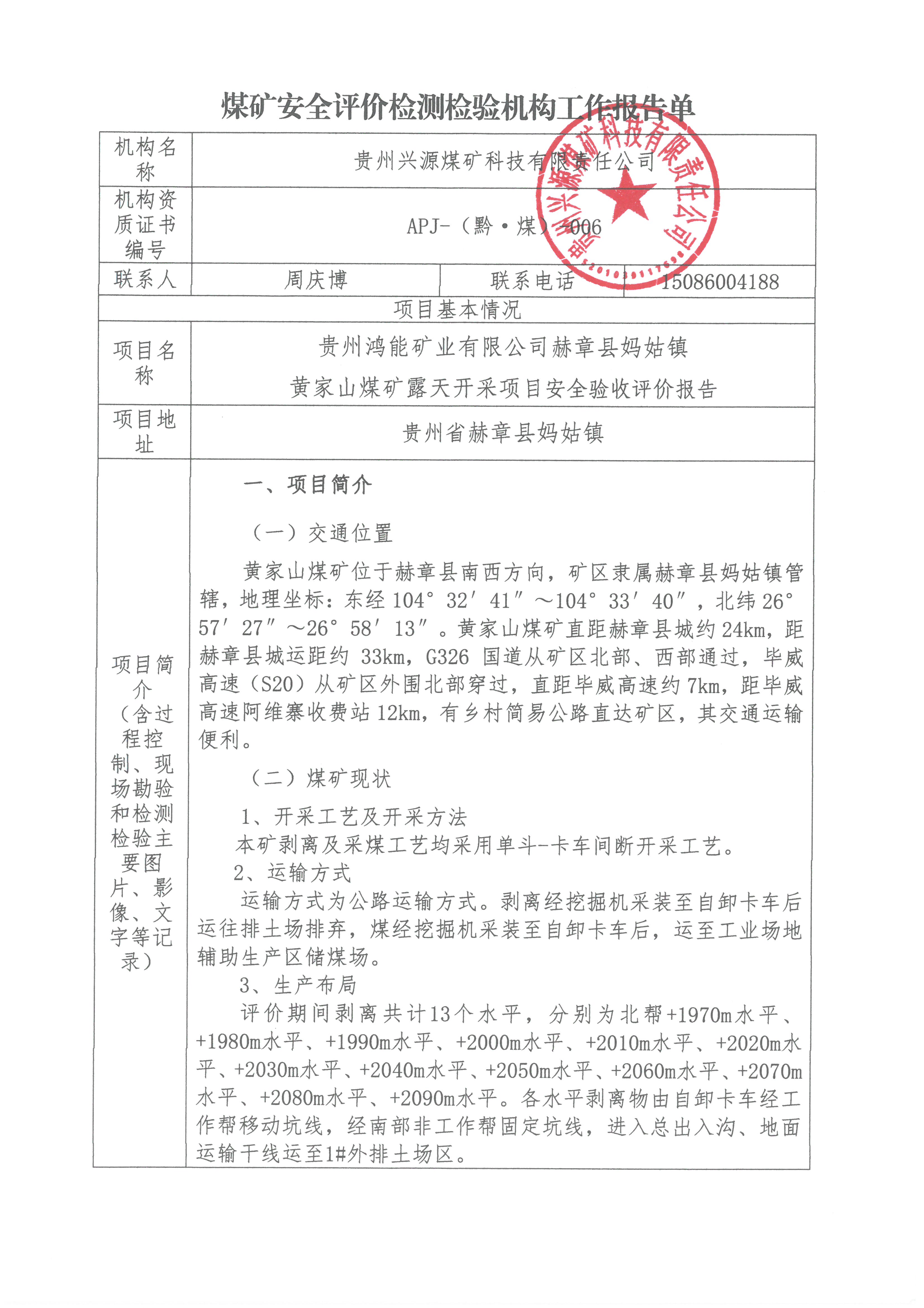 煤礦安全評(píng)價(jià)檢測(cè)檢驗(yàn)機(jī)構(gòu)工作報(bào)告單【貴州鴻能礦業(yè)有限公司赫章縣媽姑鎮(zhèn)黃家山煤礦露天開采項(xiàng)目安全驗(yàn)收評(píng)價(jià)報(bào)告】