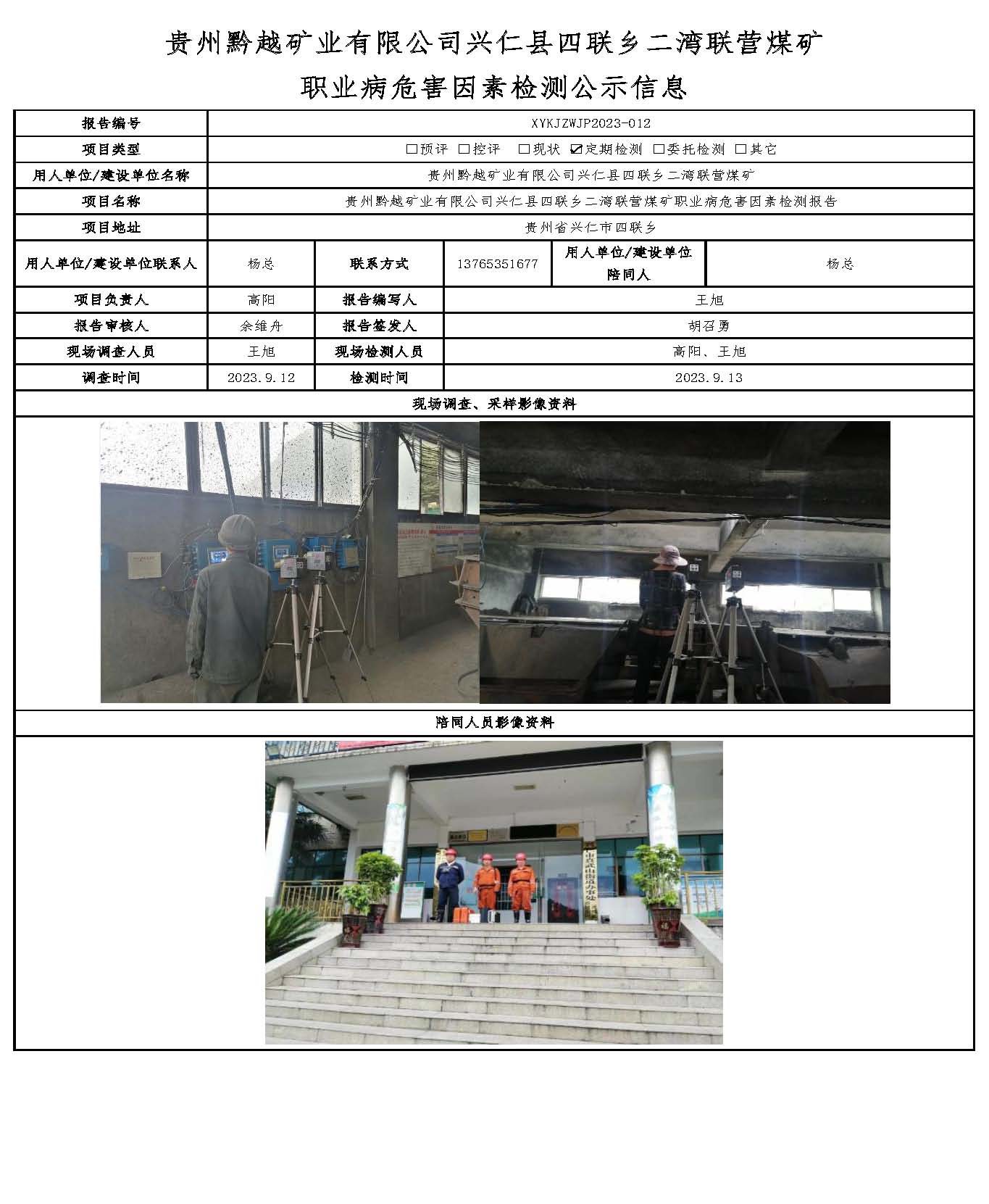 貴州黔越礦業(yè)有限公司興仁縣四聯(lián)鄉(xiāng)二灣聯(lián)營煤礦 職業(yè)病危害因素檢測公示信息