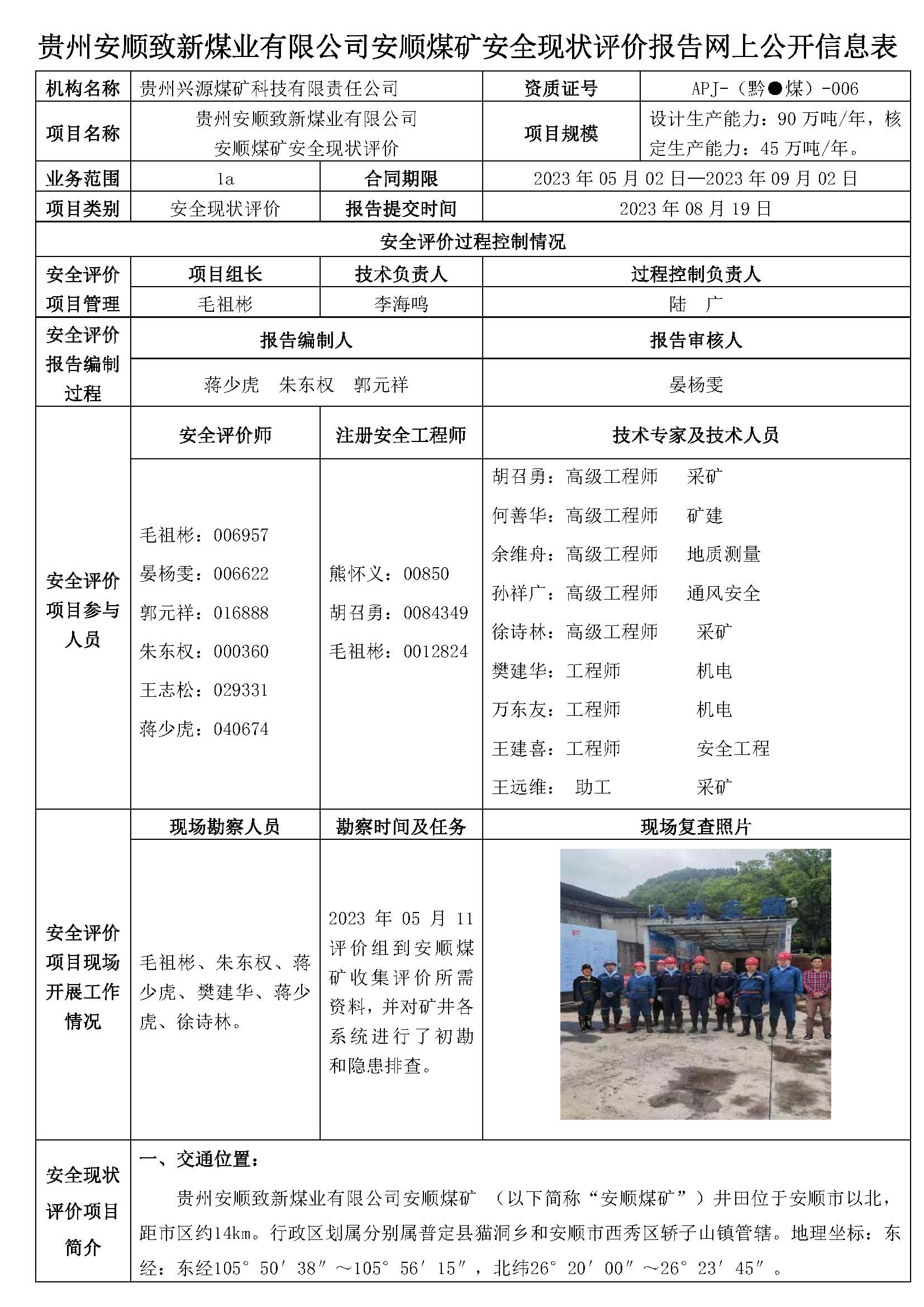 貴州安順致新煤業(yè)有限公司安順煤礦安全現(xiàn)狀評(píng)價(jià)報(bào)告網(wǎng)上公開信息表