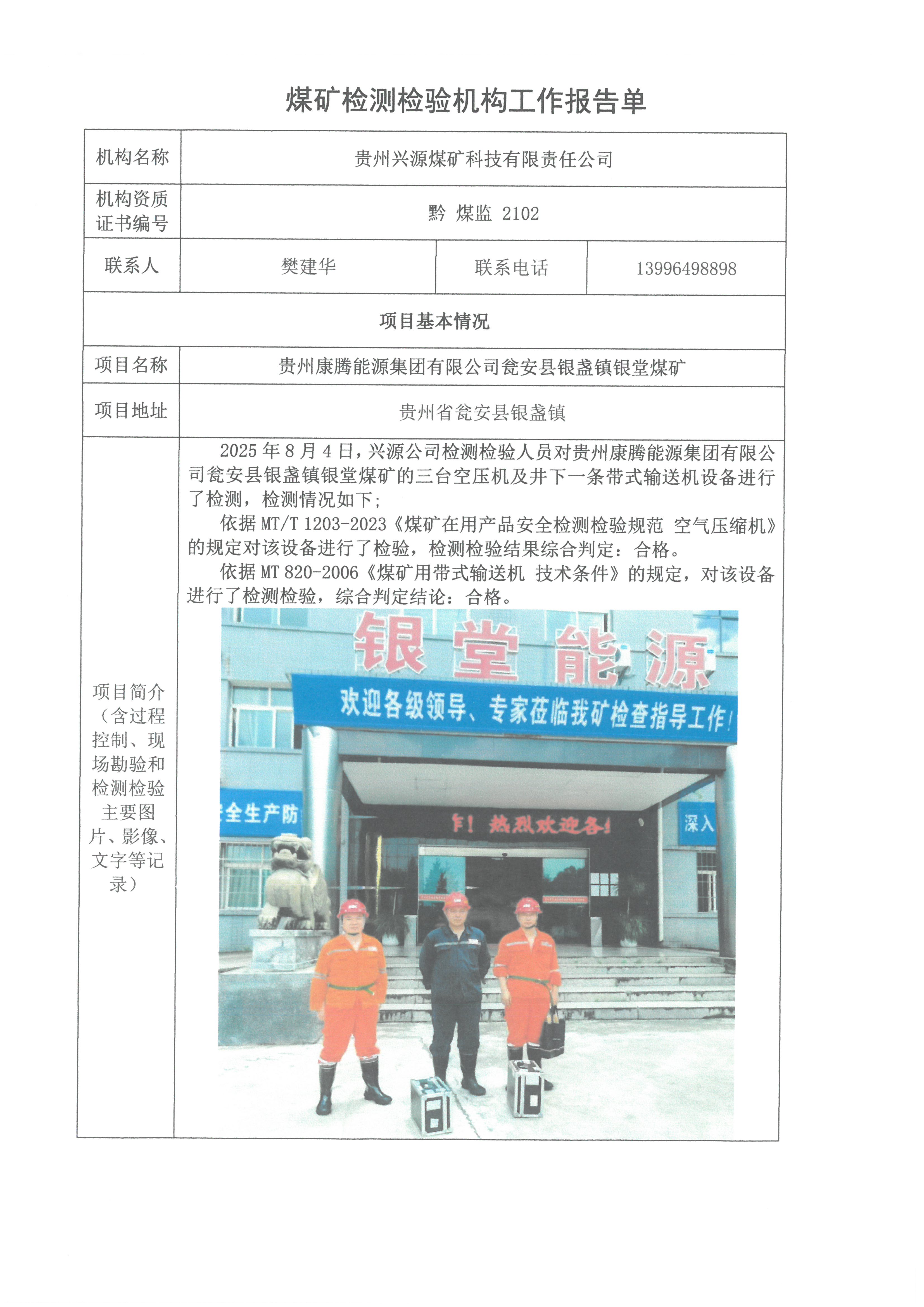 煤礦檢測檢驗(yàn)機(jī)構(gòu)工作報(bào)告單【貴州康騰能源集團(tuán)有限公司甕安縣銀盞鎮(zhèn)銀堂煤礦】