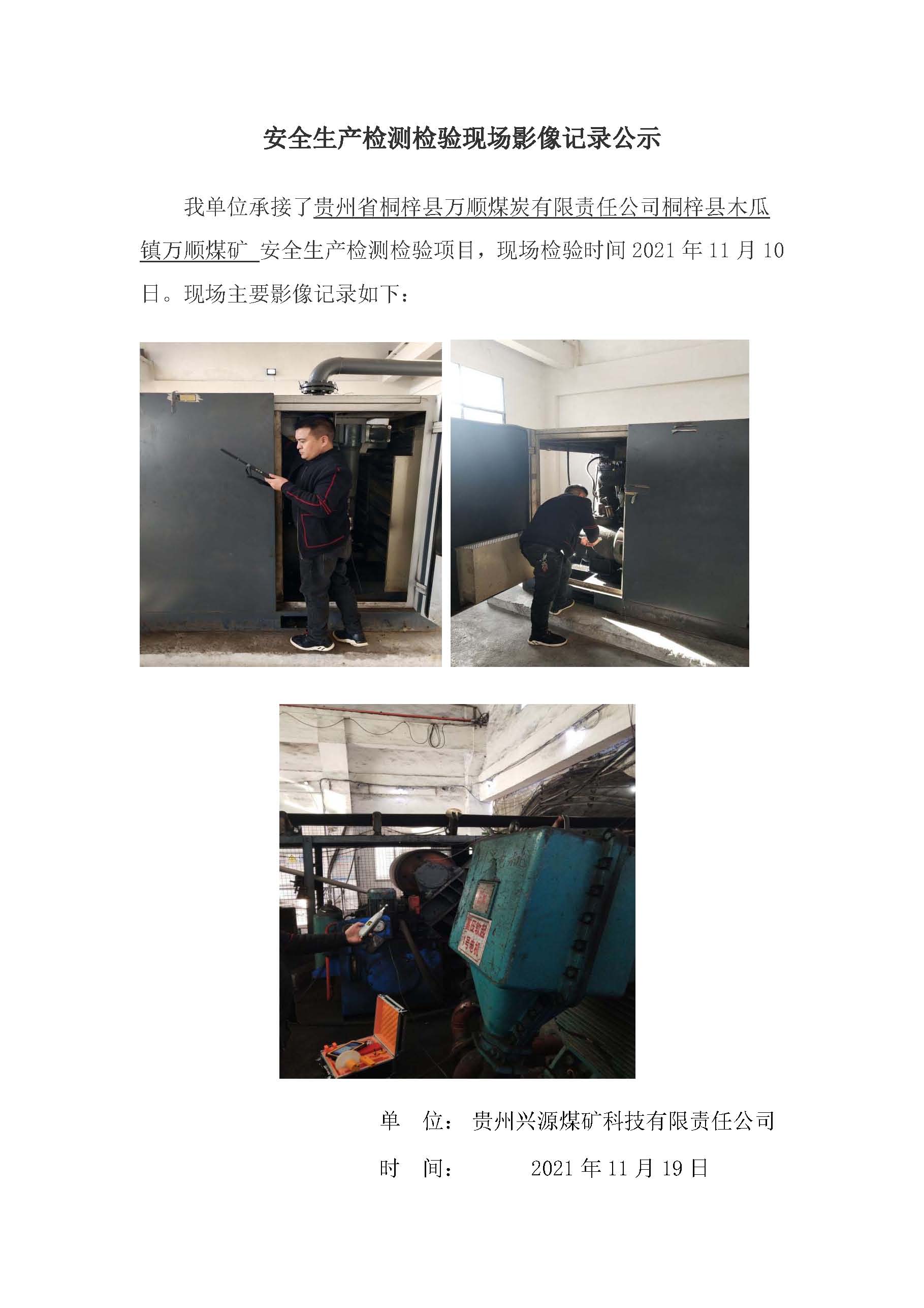 安全生產(chǎn)檢測(cè)檢驗(yàn)現(xiàn)場(chǎng)影像記錄公示【貴州省桐梓縣萬(wàn)順煤炭有限責(zé)任公司桐梓縣木瓜鎮(zhèn)萬(wàn)順煤礦】
