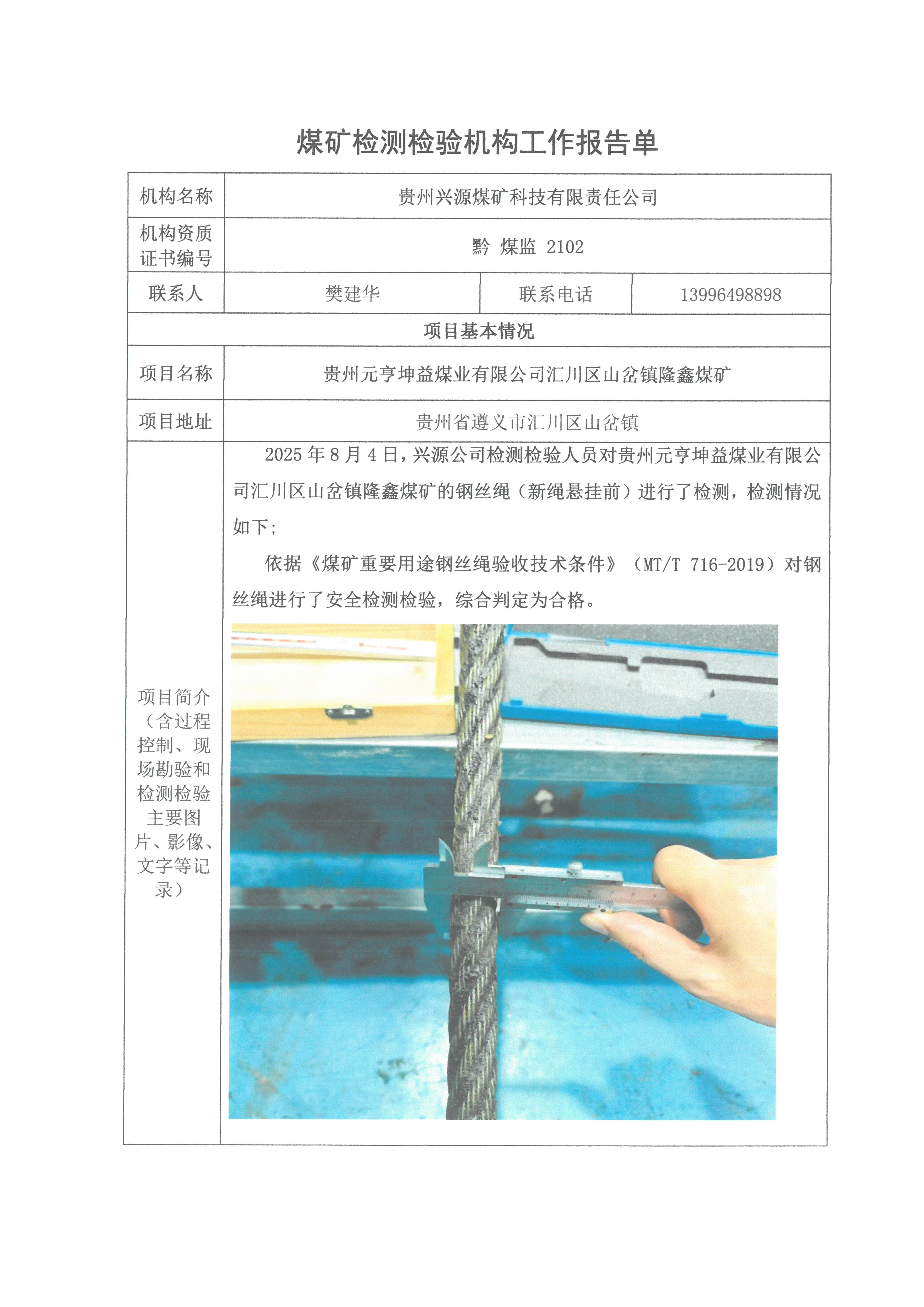 煤礦檢測(cè)檢驗(yàn)機(jī)構(gòu)工作報(bào)告單【貴州元亨坤益煤業(yè)有限公司匯川區(qū)山岔鎮(zhèn)隆鑫煤礦】