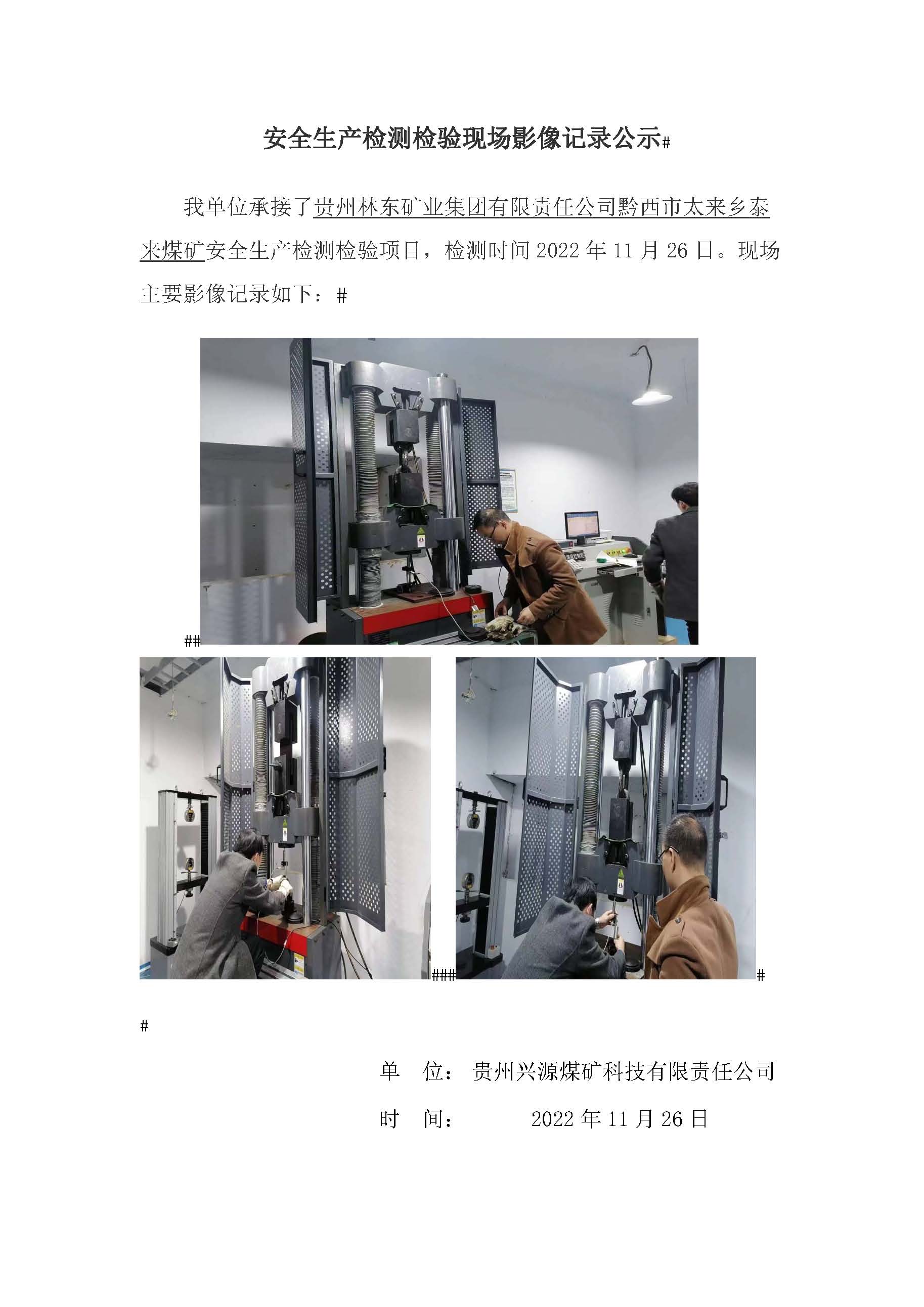 安全生產(chǎn)檢測檢驗(yàn)現(xiàn)場影像記錄公示【貴州林東礦業(yè)集團(tuán)有限責(zé)任公司黔西市太來鄉(xiāng)泰來煤礦】