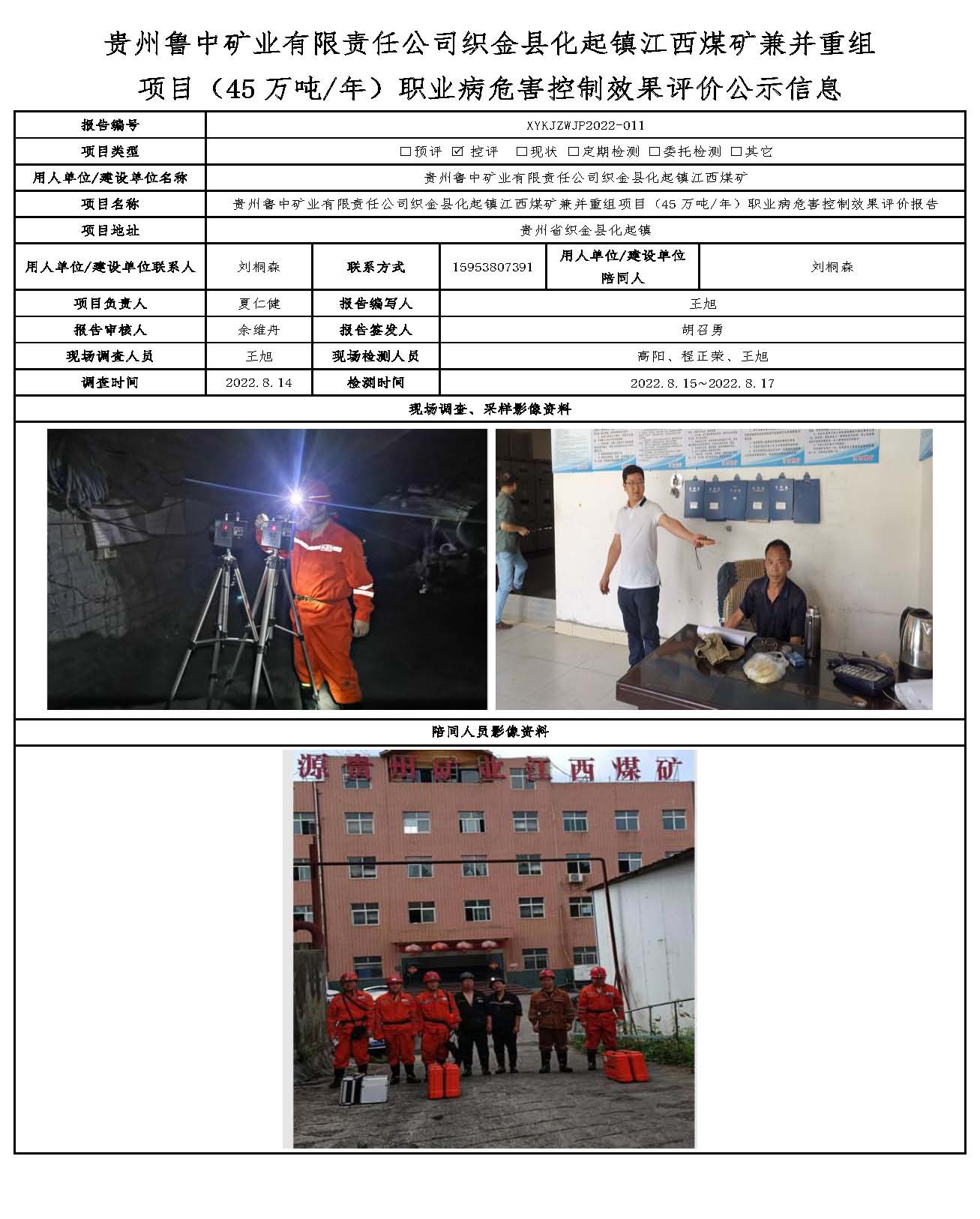 貴州魯中礦業(yè)有限責(zé)任公司織金縣化起鎮(zhèn)江西煤礦兼并重組項(xiàng)目職業(yè)病危害控制效果評(píng)價(jià)公示信息
