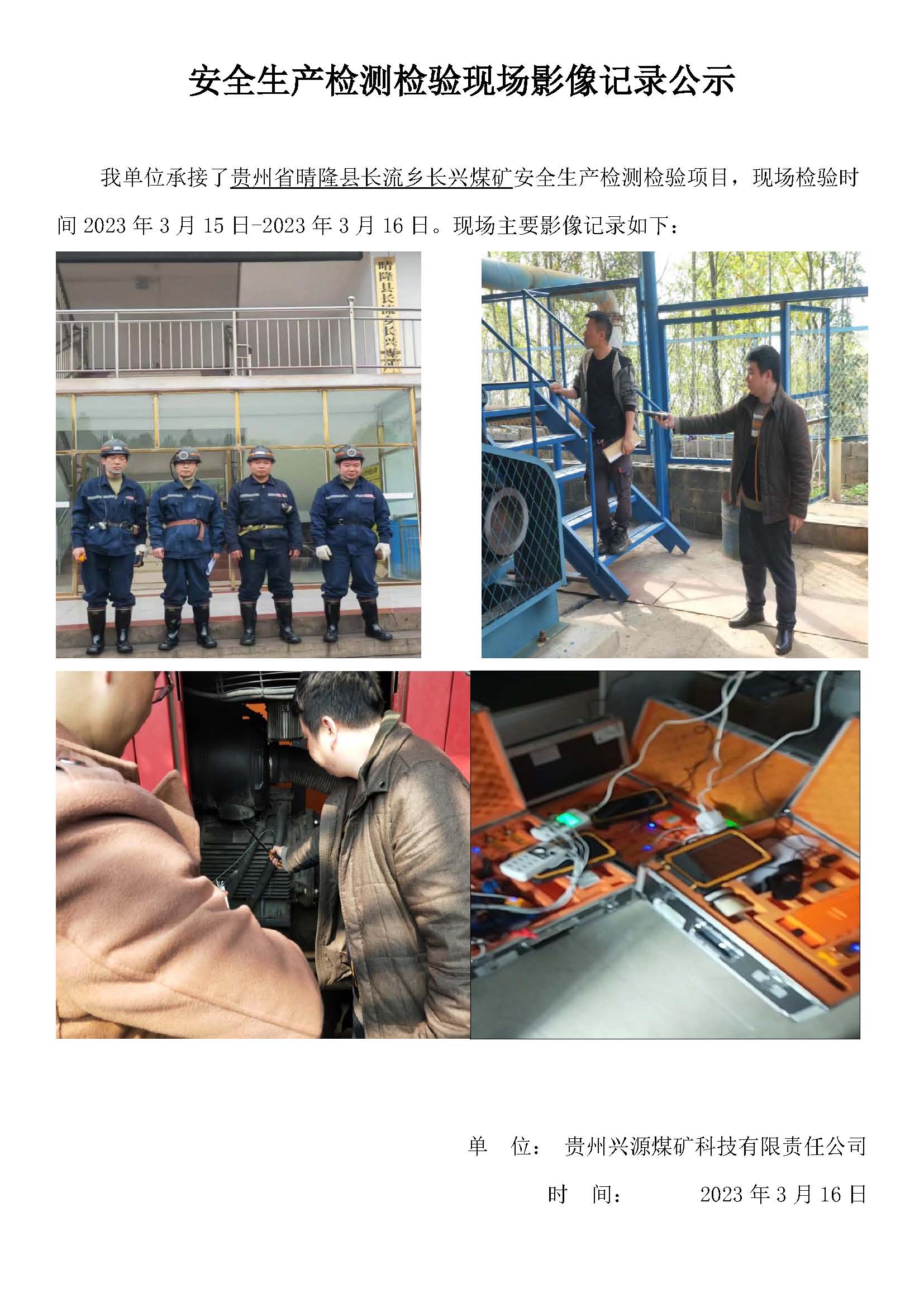 安全生產(chǎn)檢測(cè)檢驗(yàn)現(xiàn)場(chǎng)影像記錄公示【貴州省晴隆縣長流鄉(xiāng)長興煤礦安全生產(chǎn)檢測(cè)檢驗(yàn)項(xiàng)目】
