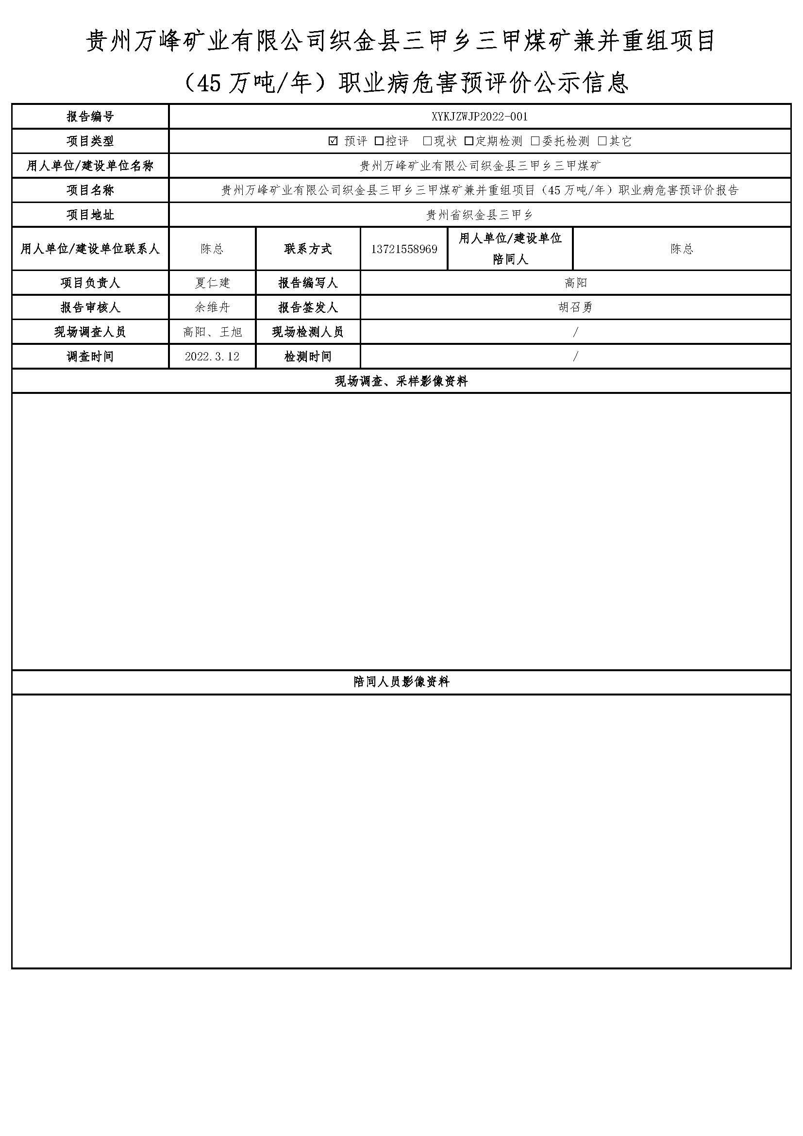 貴州萬峰礦業(yè)有限公司織金縣三甲鄉(xiāng)三甲煤礦兼并重組項(xiàng)目 (45萬噸/年)職業(yè)病危害預(yù)評(píng)價(jià)公示信息