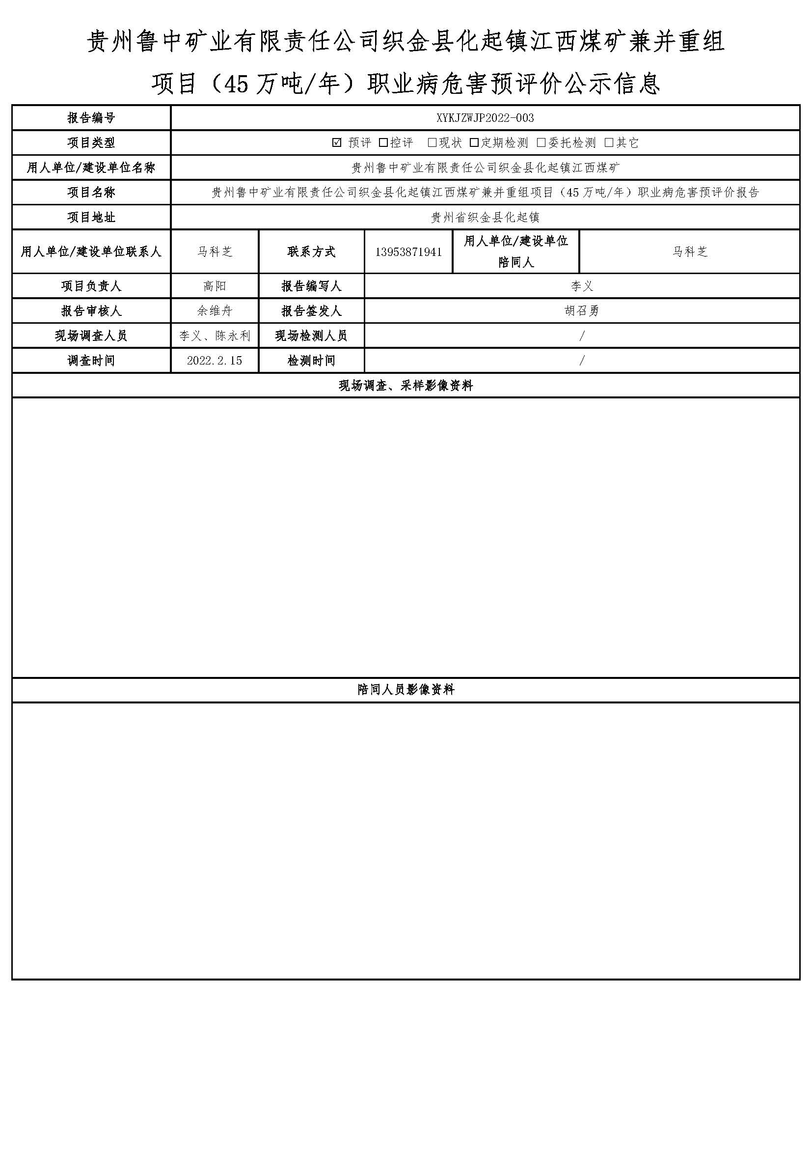 貴州魯中礦業(yè)有限責(zé)任公司織金縣化起鎮(zhèn)江西煤礦兼并重組項(xiàng)目職業(yè)病危害預(yù)評(píng)價(jià)公示信息