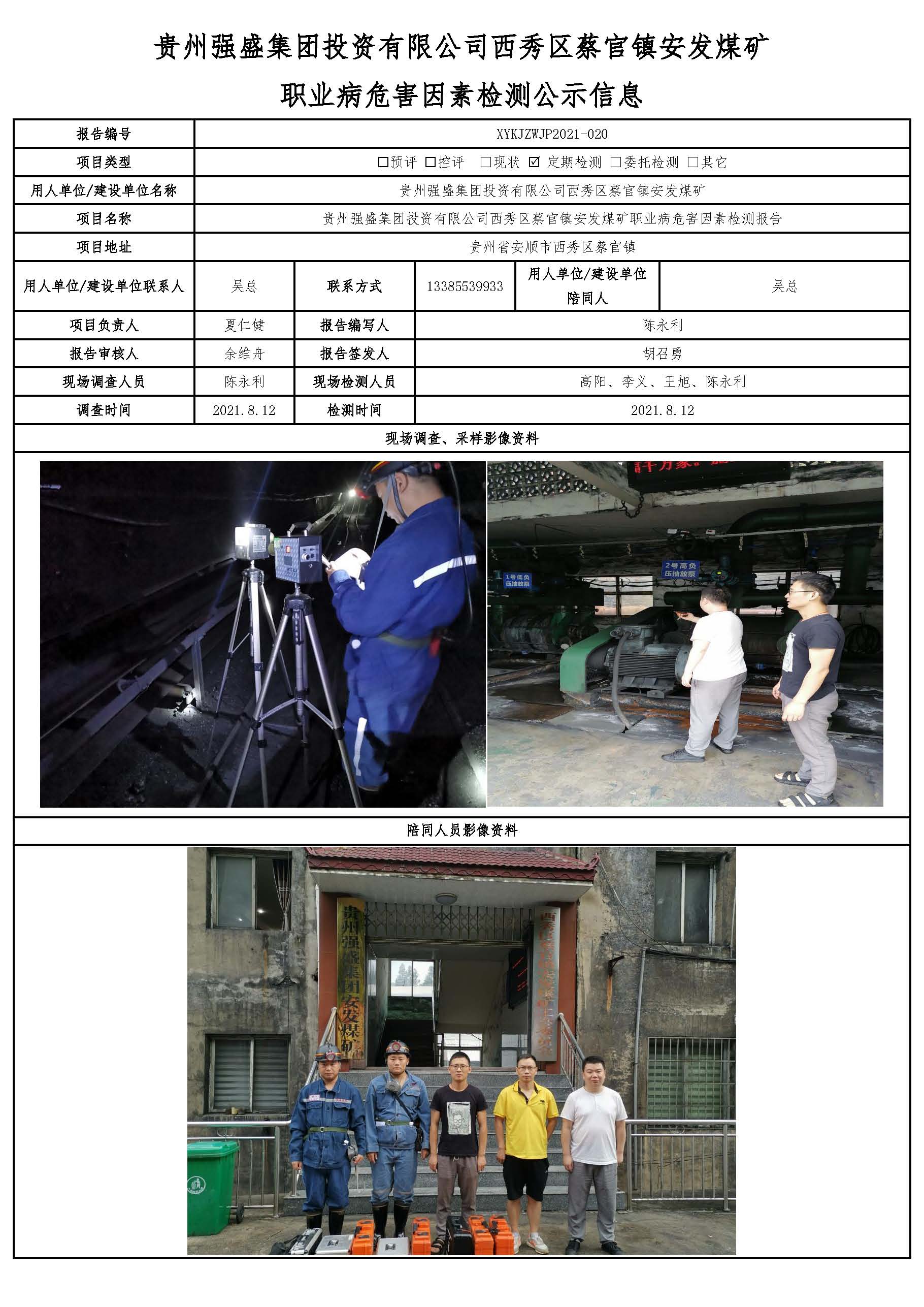 貴州強盛集團投資有限公司西秀區(qū)蔡官鎮(zhèn)安發(fā)煤礦 職業(yè)病危害因素檢測公示信息