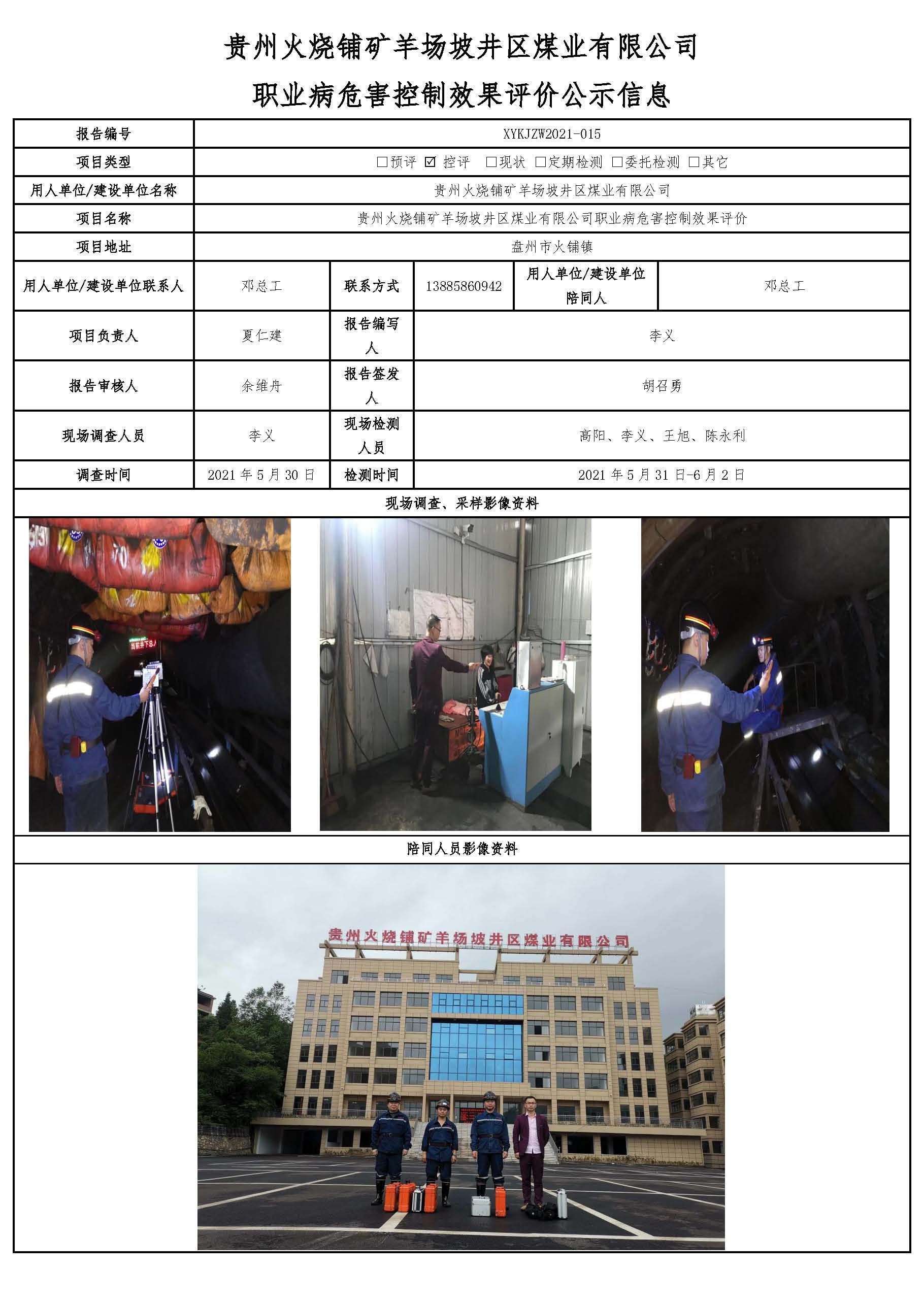 貴州火燒鋪礦羊場坡井區(qū)煤業(yè)有限公司 職業(yè)病危害控制效果評價公示信息