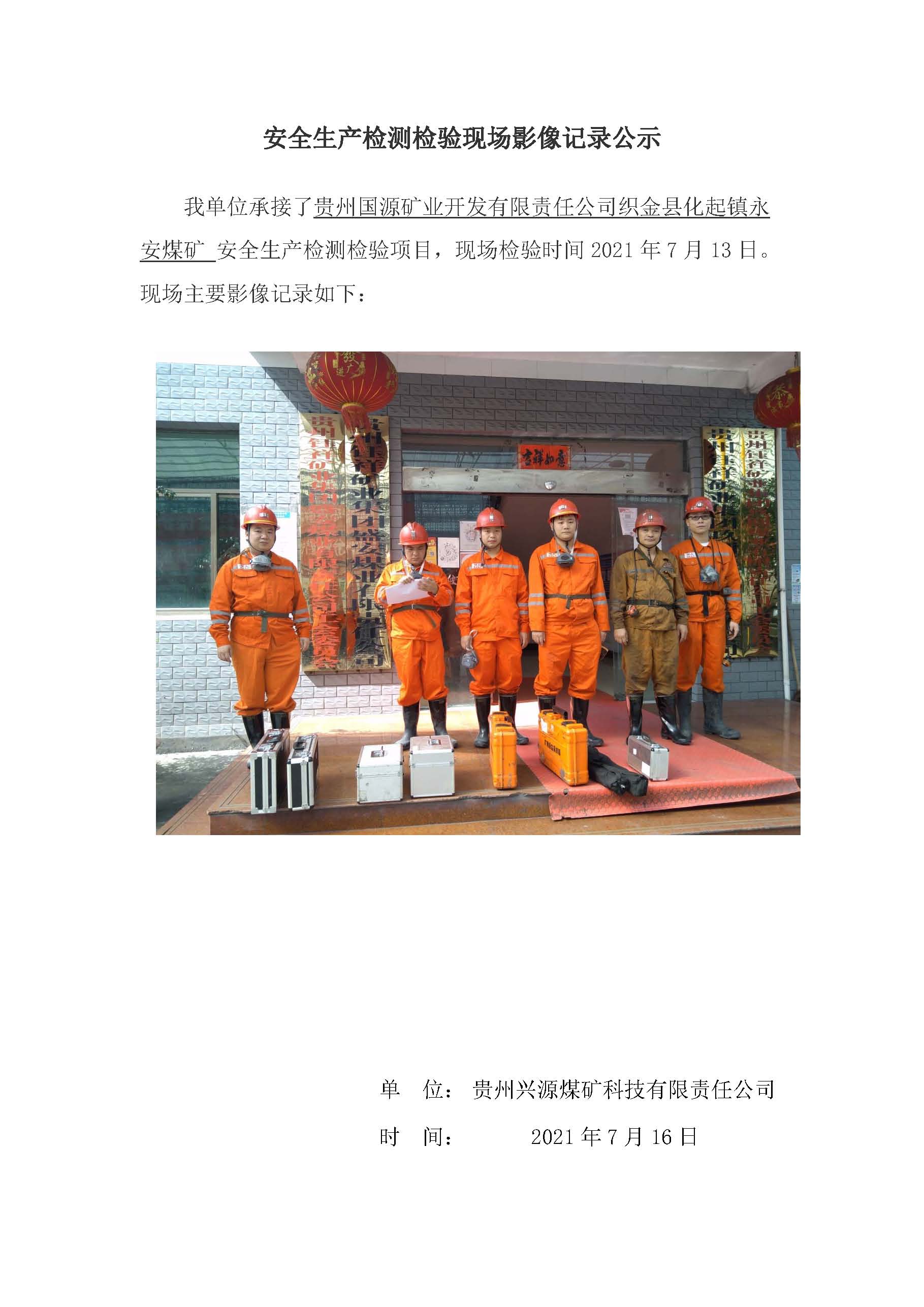 安全生產(chǎn)檢測檢驗(yàn)現(xiàn)場影像記錄公示【貴州鈺祥礦業(yè)集團(tuán)投資有限公司金沙縣沙土鎮(zhèn)盛安煤礦】