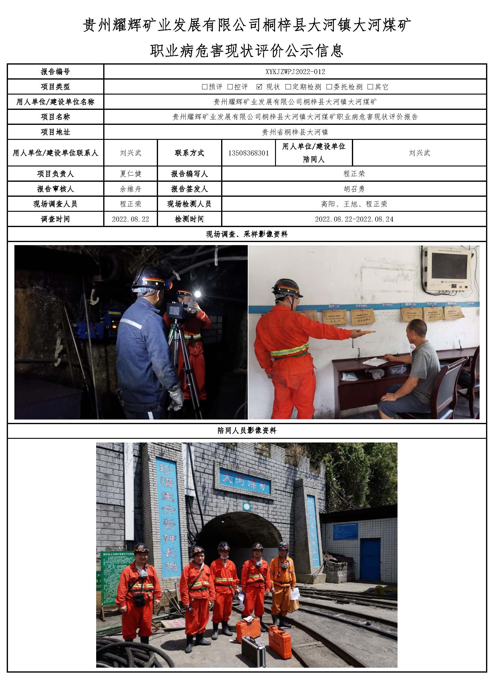 貴州耀輝礦業(yè)發(fā)展有限公司桐梓縣大河鎮(zhèn)大河煤礦職業(yè)病危害現(xiàn)狀評價公示信息