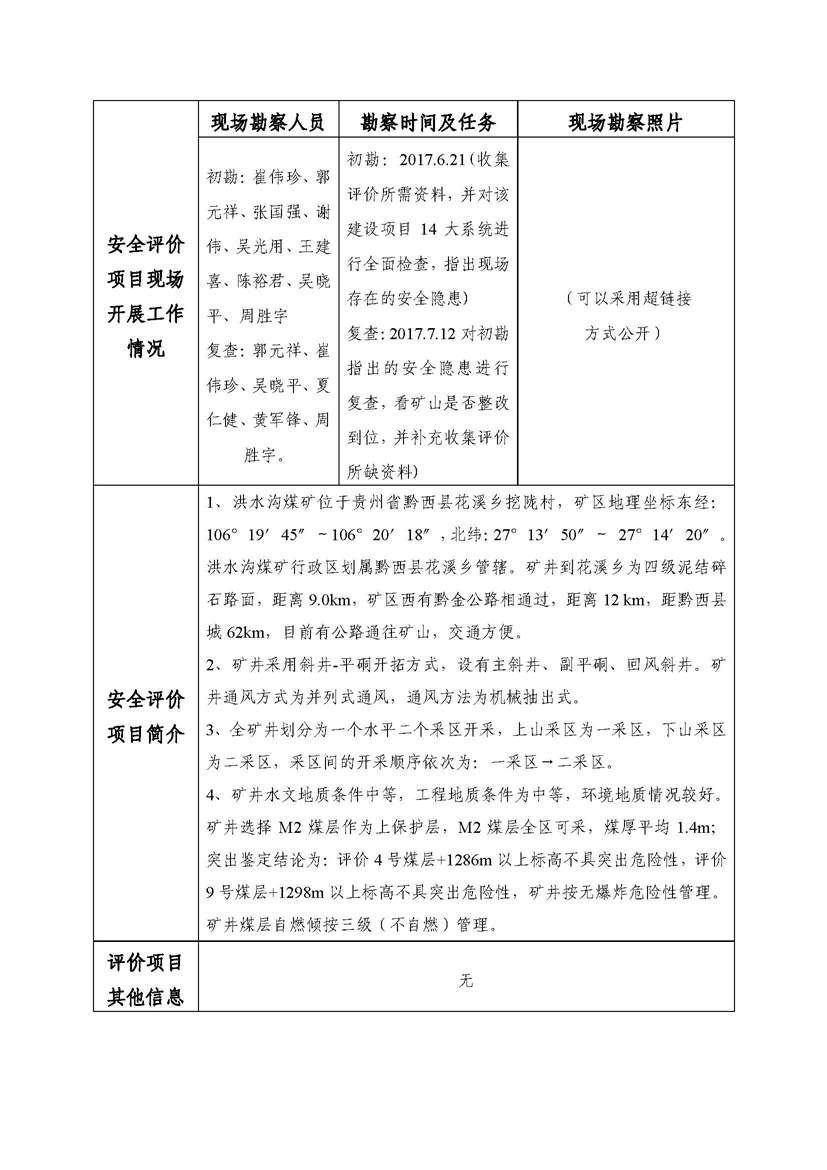 貴州大西南礦業(yè)有限公司黔西縣花溪鄉(xiāng)洪水溝煤礦安全現(xiàn)狀評(píng)價(jià)網(wǎng)上公開信息表